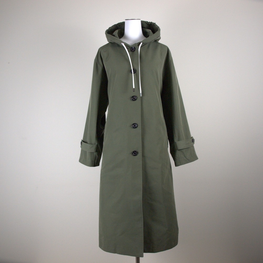 高密度に織り上げたスタイリッシュなオックス素材使用。非フッ素撥水加工を施した機能素材。微光沢が上品でボールチェーンを施したしーんを選ばないエレガントなフードコート。CO撥水(非フッ素撥水加工)