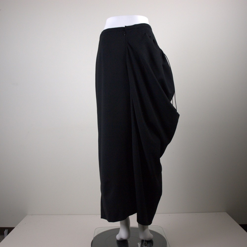 (カタログ掲載)サイロスパン糸をを使用した2WAYストレッチツイル。上品な光沢感としなやかな質感が特徴。右スカートにドローストリングのギャザーパーツでドレープを出したイレギュラーシルエットのスカート。大人的ハイセンスなスカート。