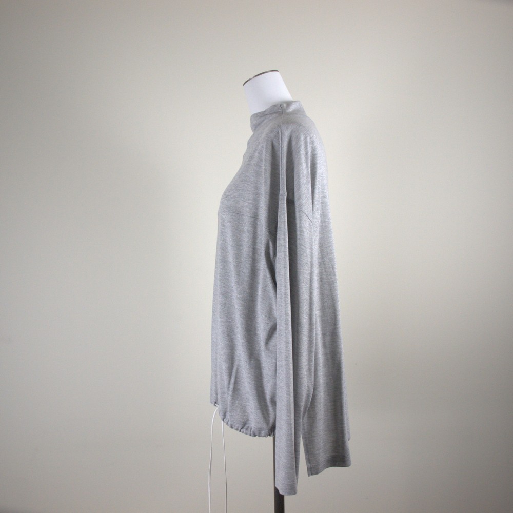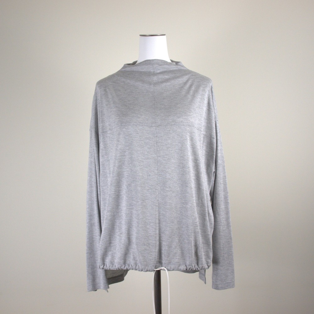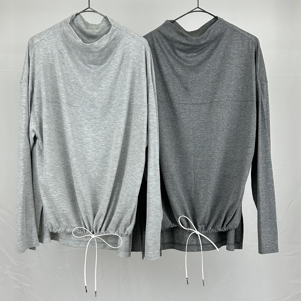 森下メリヤス別注素材 光沢が美しいラメ引き揃えハイゲージジャージ。ゆったりとしたハイネックデザインカットソー。