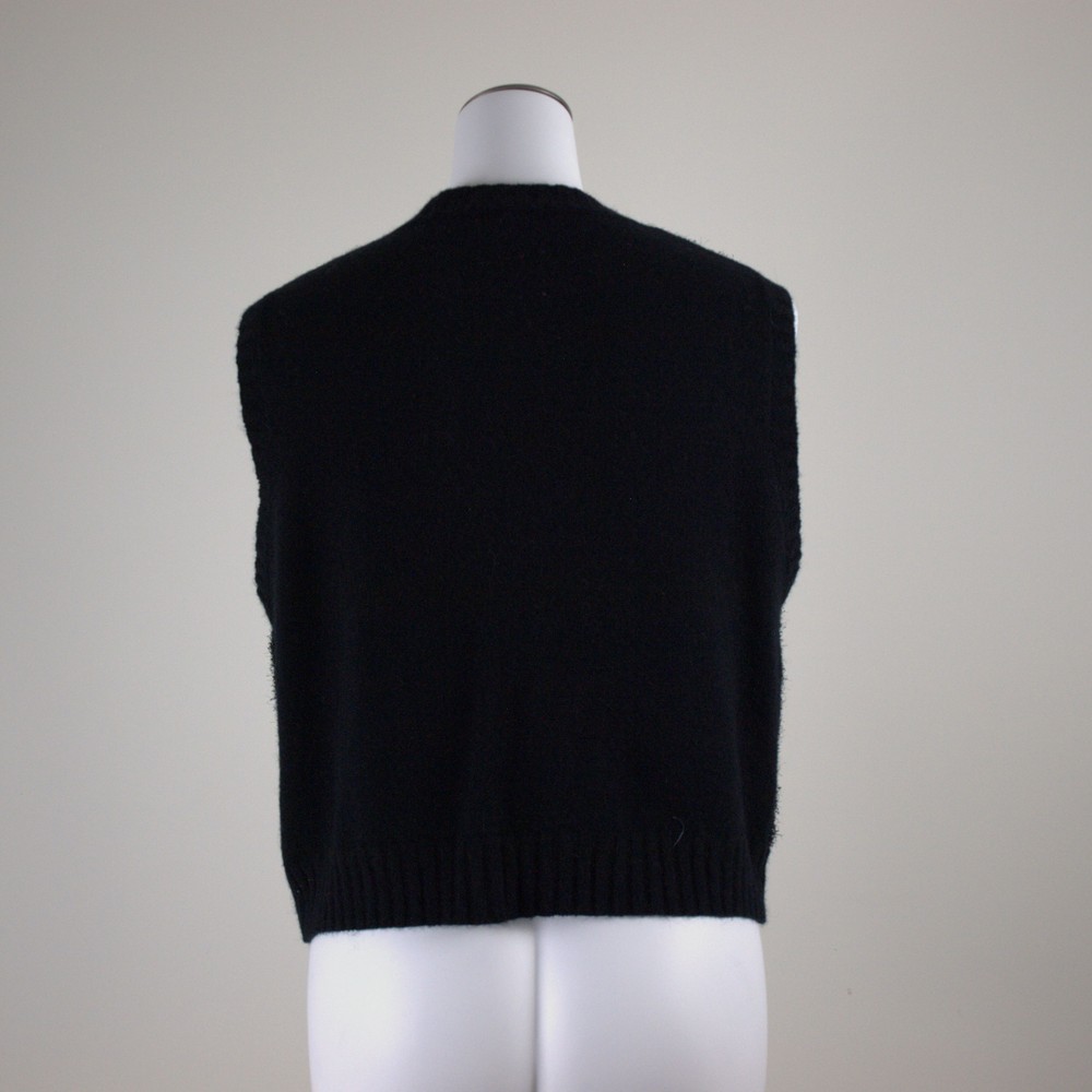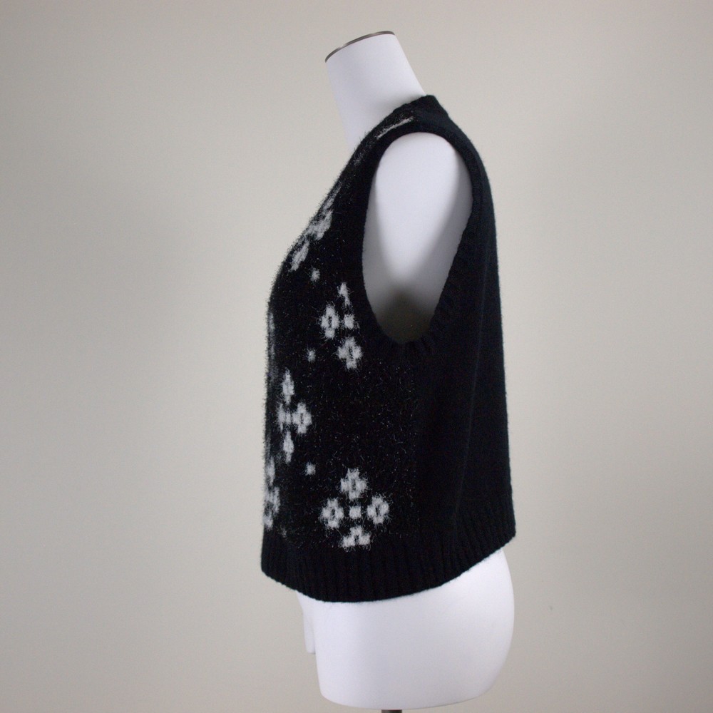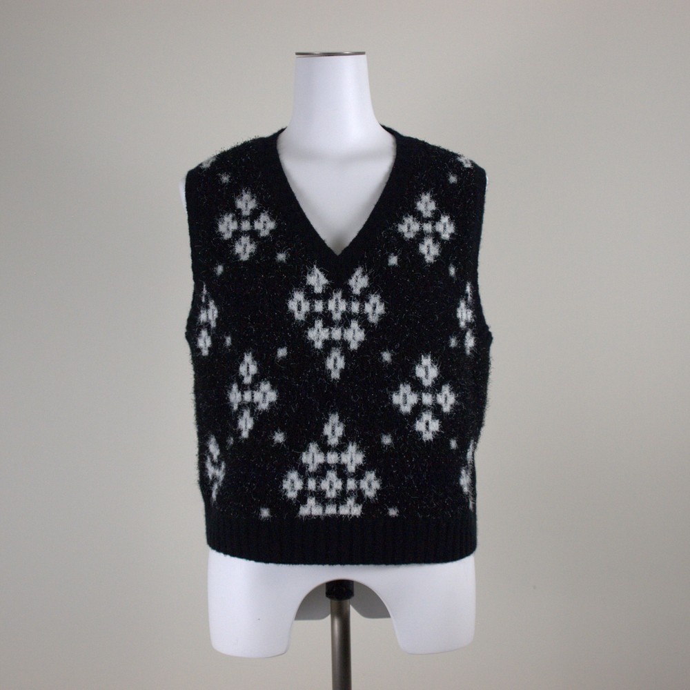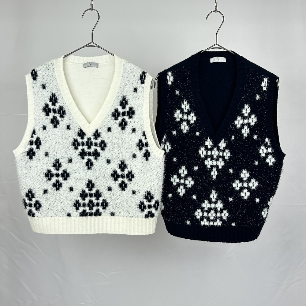 花芯のような細い糸の白と黒をあわせてジャガード柄し仕上げた新しい質感の表面感。最新の糸でジャガード柄を表現した大人かわいいショートベスト
