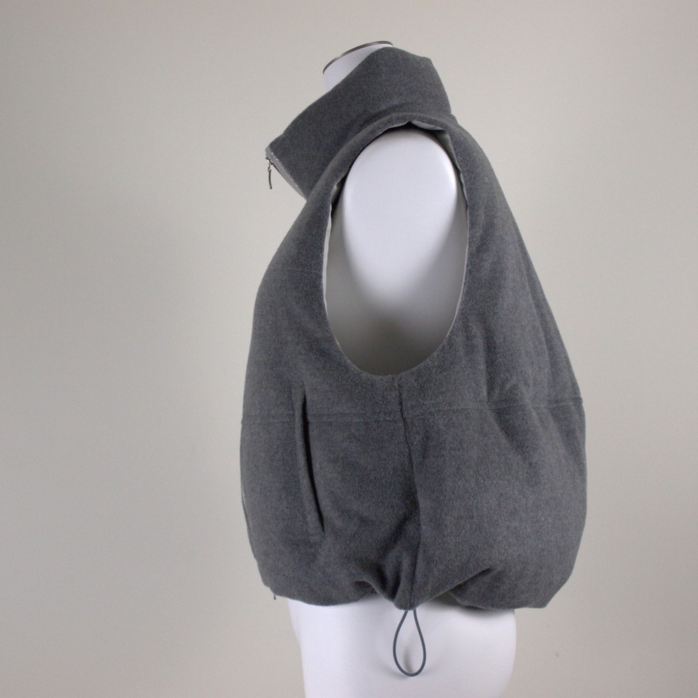 大津毛織 ピュアカシミヤ ビーバー起毛使用。ダウン90%フェザー10%高級仕様。後ろ丈長めのラウンドヘム。ボールチェーンもアクセント。軽く暖かい、他にない高級なベスト。