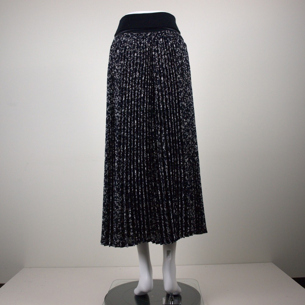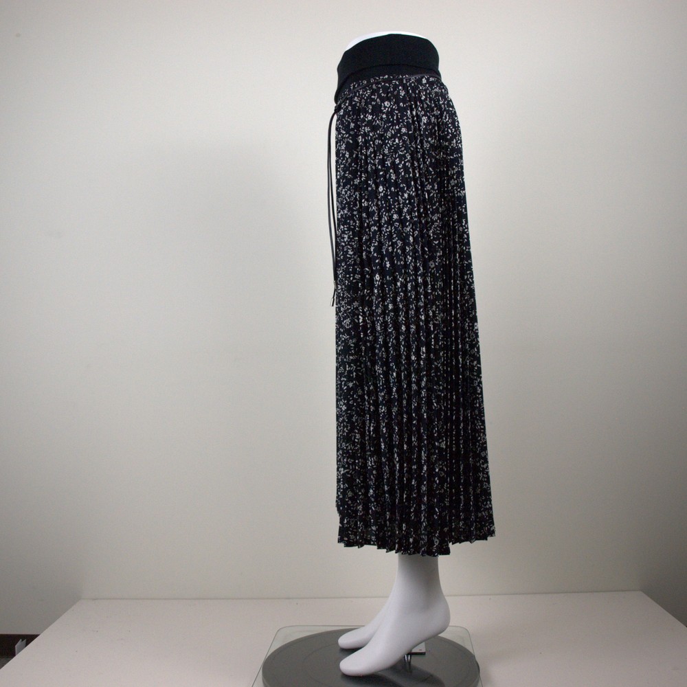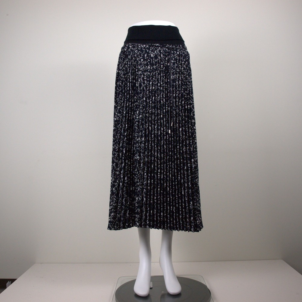 オリジナル小花プリントにブルニョーリ社(イタリア)のテレコ素材(定番素材)をウエスト部分使い合わせたロング丈のプリーツスカート。ウエストテレコ部分でスカート丈を調整できます。