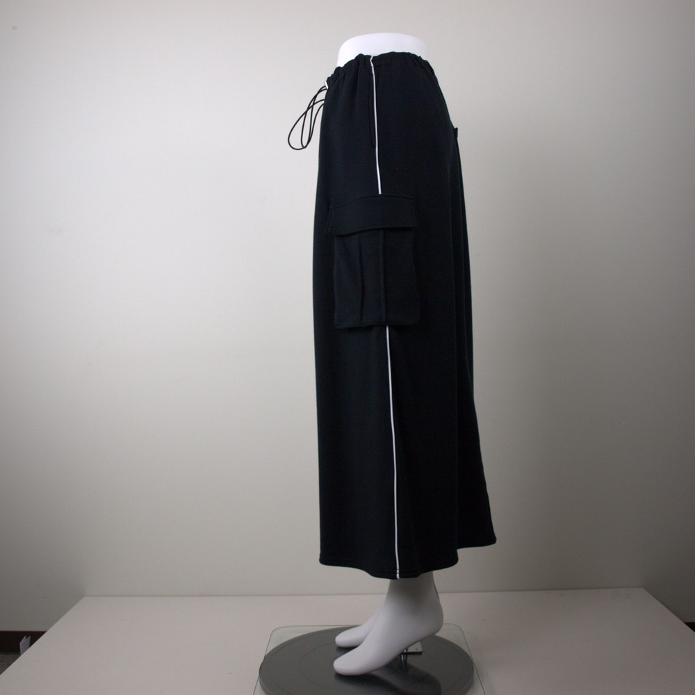 軽く肌触りのよい裏毛は和歌山森下ジャージメリヤス別注素材・オリジナルカラー。長めのコンフォータブルなカーゴスカートは裏毛で抜け感のある程よいオシャレを楽しめます。同素材のトップスでも、ニットと合わせて甘めのスタイリングも大人カジュアルになります。サイドのポケットと配色のパイピングがポイント。
