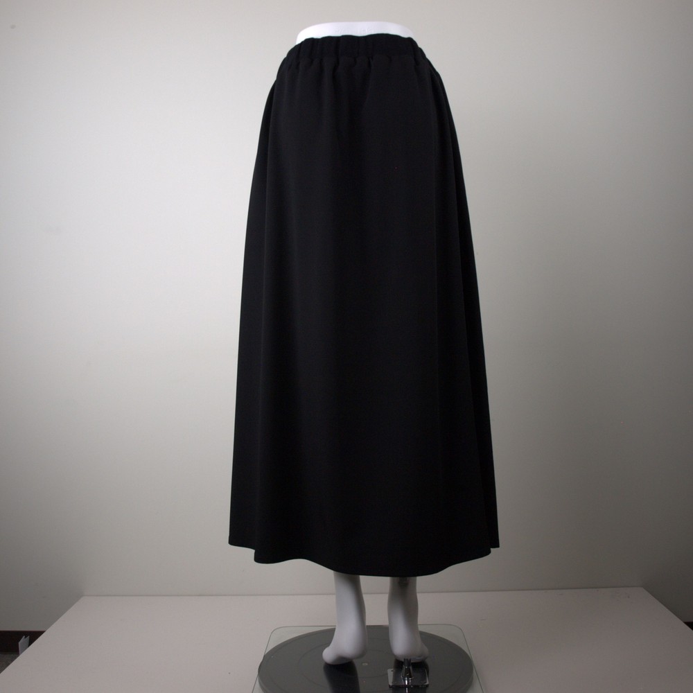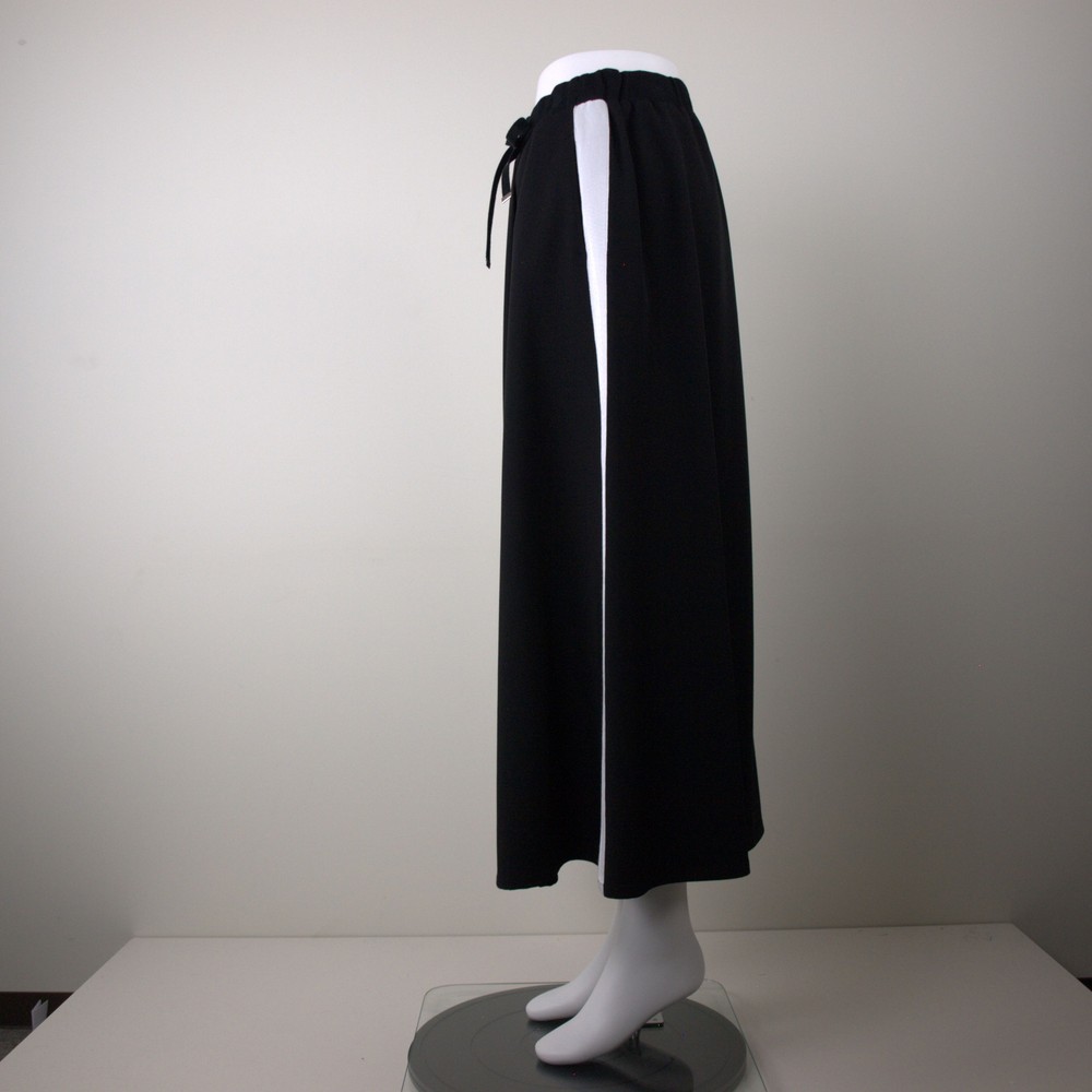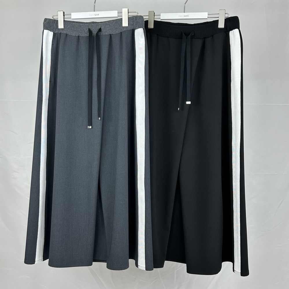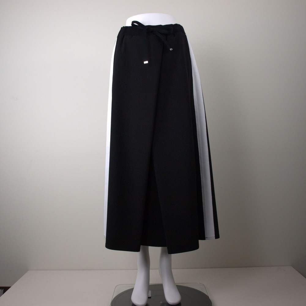 2WAYストレッチの滑らかなドライタッチなギャバで贅沢にタックを折りたたんだはき込みのスカートはサイドのテープがポイント。パンツか?と思わせる程のタックの分量で楽チン、カッコよく見えます。LT5417102クラシカルチェックと同型。無地展開にしているこちらはサイドテープをバイカラーにして縦ラインを強調しています。ショート丈のトップスと組み合わすとカッコいいバランスができます。4way stretch