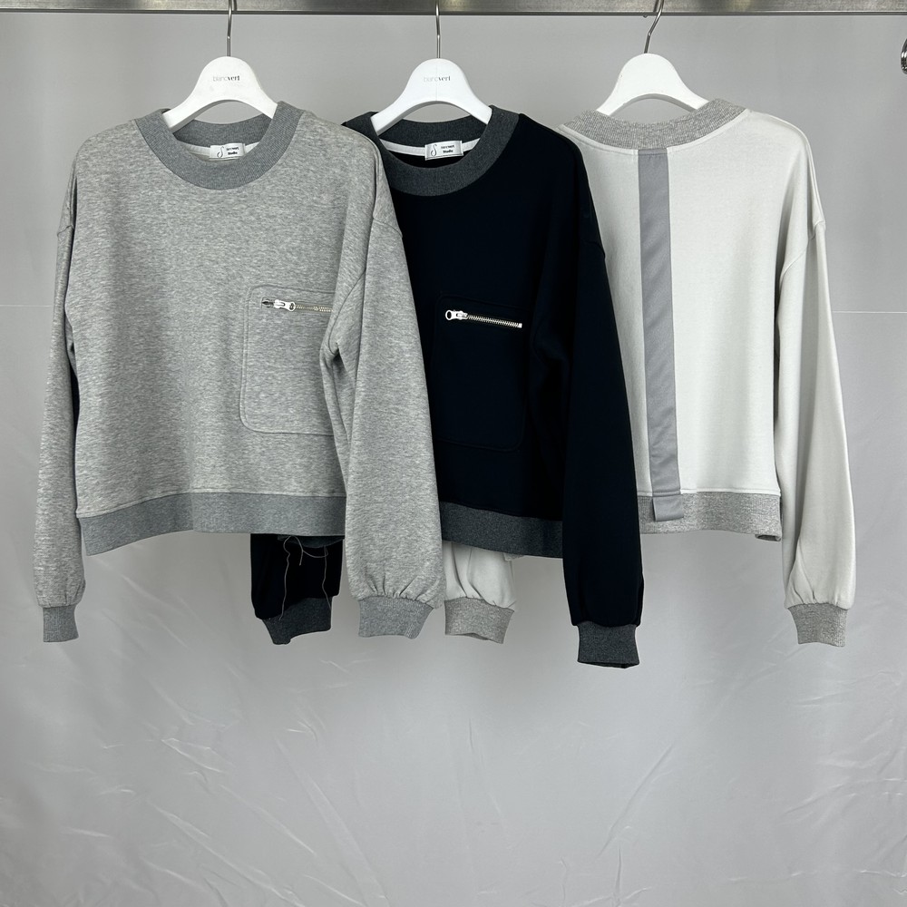 軽く肌触りのよい裏毛は和歌山森下ジャージメリヤス別注素材・オリジナルカラー。絶妙な着丈とファスナー明きの胸パチポケット、後ろスタイルの背中心のテープはblancvert studioらしいこだわり。ボトムとのバランスが取りやすいコンフォータブルなスウェットコーディネイトでこなれ感を。