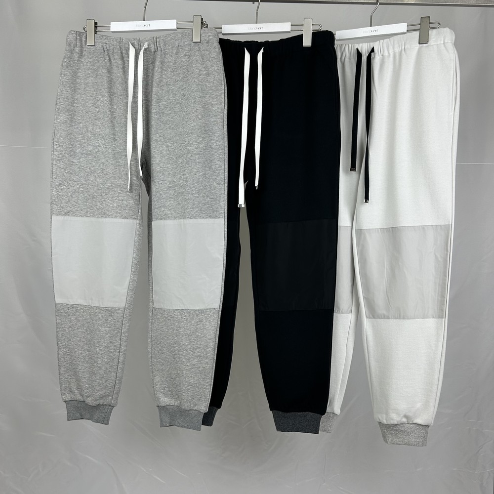 軽く肌触りのよい裏毛は和歌山森下ジャージメリヤス別注素材・オリジナルカラー。別布を膝当てにしたジョガーパンツはいつもよりも細目シルエットにしてラグジュアリーなリラックススタイルに。シャツやニットと足元はブーツで合わせるとこなれ感のオシャレが。